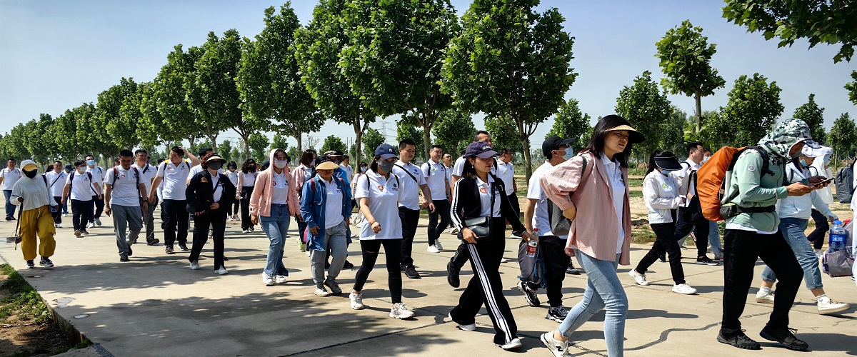 到達景區停車場,按照預定計劃展開“一圈到底”游戲。各組選派15人在指定位置列隊,小組成員手牽手,一字排開,待接到游戲開始的指令后,各小組同時傳遞“呼啦圈”。由第一名成員開始傳遞并鉆圈,直至最后一名成員。要求在傳遞過程中不得出現掉圈,松開手等現象。出現掉圈則從第一名成員重新開始第二次傳遞,游戲時間連續計時打分。經過激烈角逐,第二組獲得了第一名的好成績。